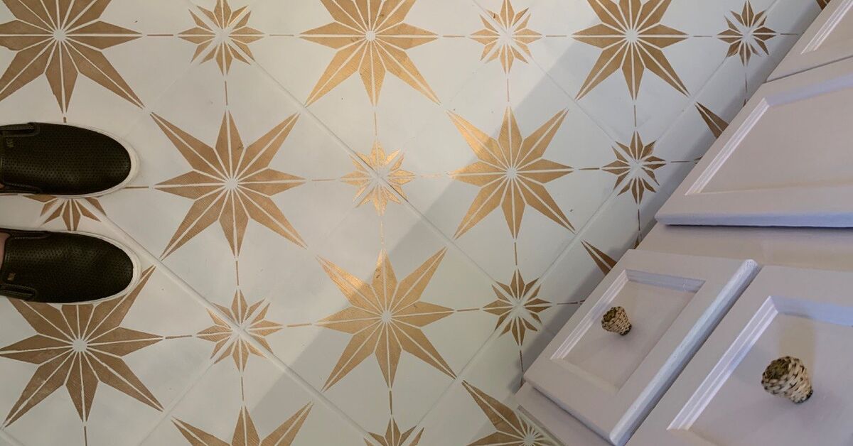 #Bathroom | She hated her plain and boring bathroom so she painted the cabinet, walls and tile! See this creative before and after bathroom update. Check out this tutorial how to paint bathroom floor tiles.